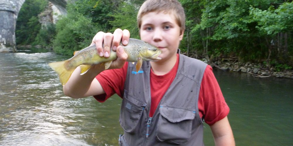 - Mi-mars à mi-avril : A l’ouverture les eaux sont souvent froides et seules les pêches lentes à proximité du fond rapportent quelques poissons. A cette période, je privilégie la pêche dans les gorges Tarn qui est l’une des rivières les plus précoces de France. Grâce au climat et aux résurgences, les conditions de température s’améliorent rapidement et les premières éclosions de Baetis et de March Bown peuvent y être massives et permettent de pêcher à la mouche dès le début de saison. C’est aussi une très bonne période pour pêcher au toc et en nymphe au fil sur le Lot et la Colagne aval.